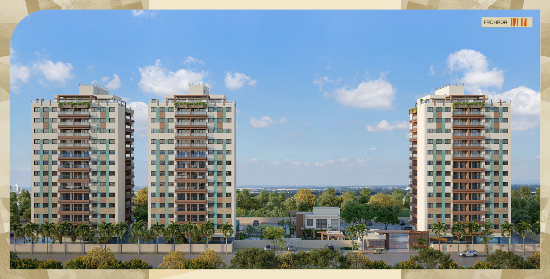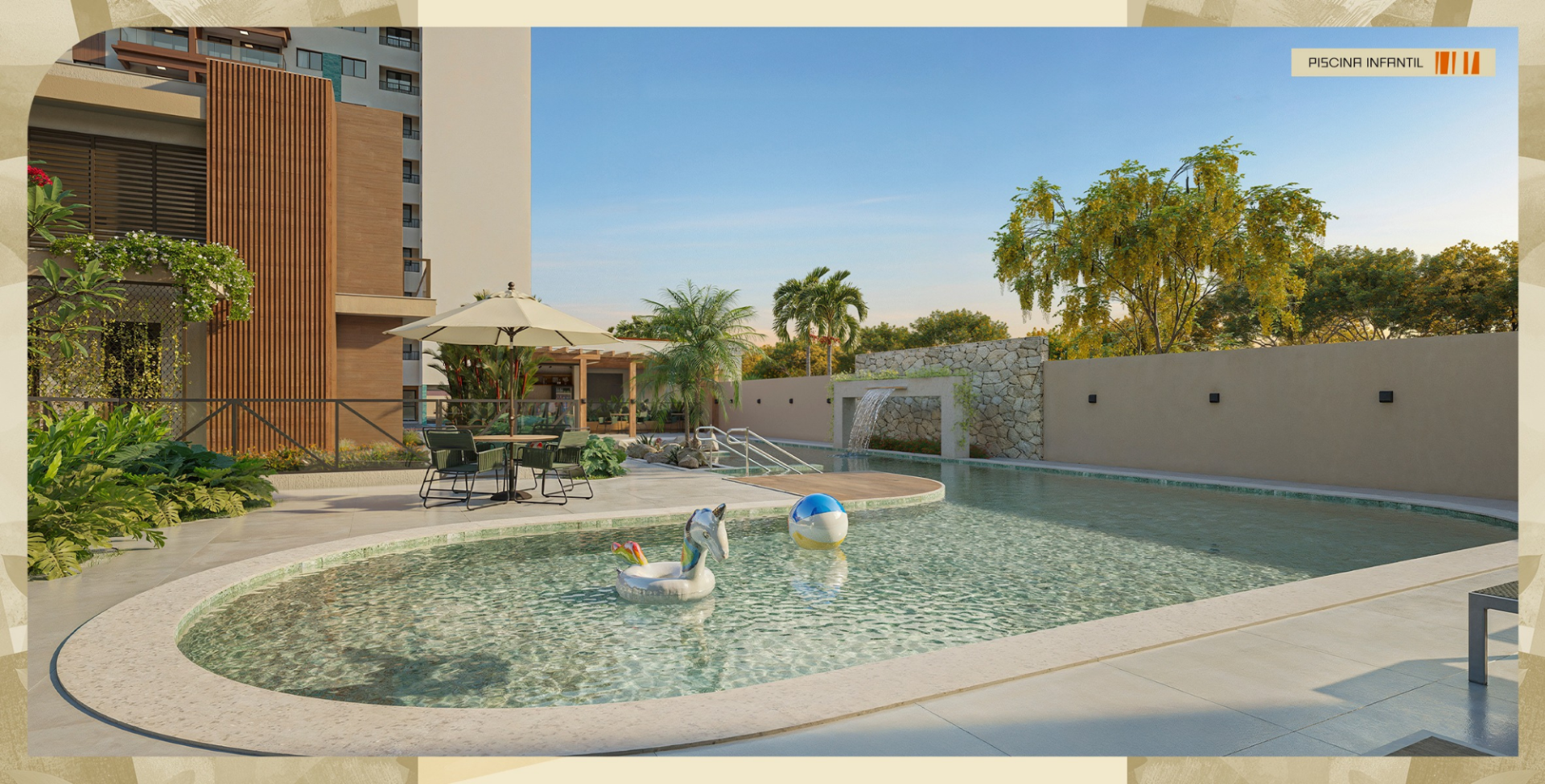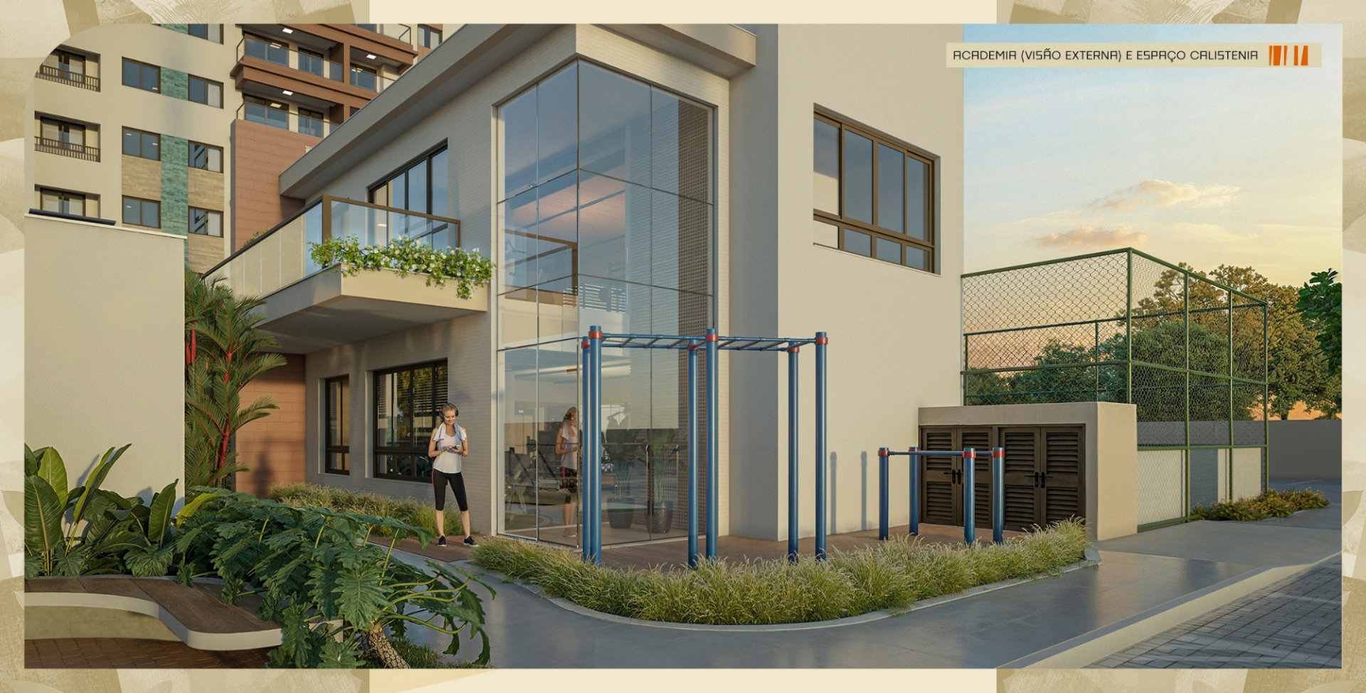 Lazer completo: academia com dois pavimentos e varanda, Espaço calistenia,Piscina com Prainha, Espaço gourmet, Salão de festas, Espaço esportivo com arquibancada, Praça de convivência, Pergolado, Bicicletário, Espelho d'água e deck, Parquinho, Minimercado, Salão pet e Parque pet.