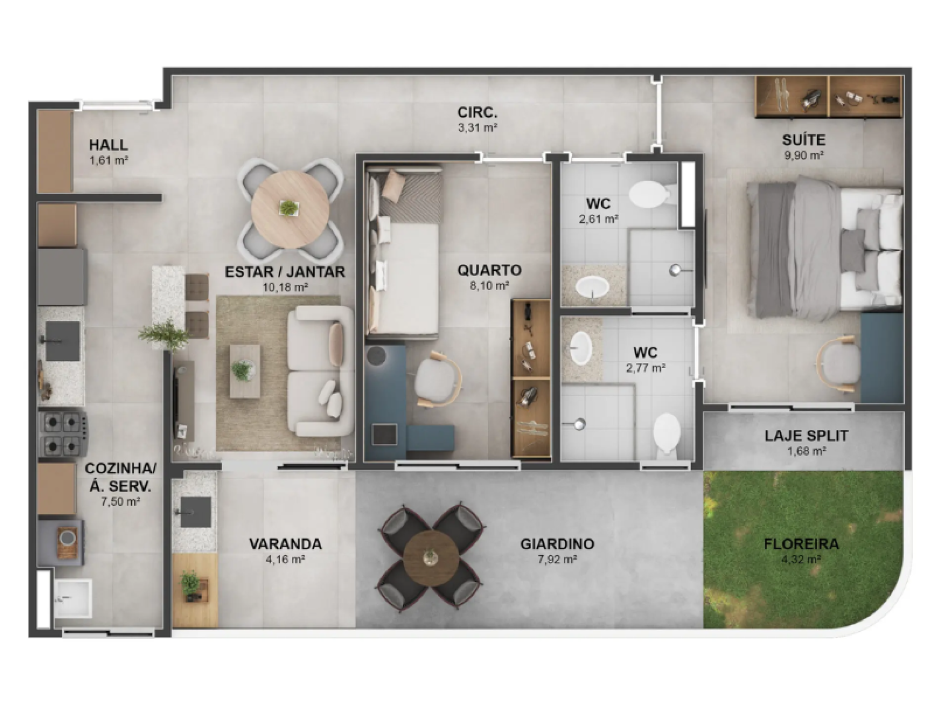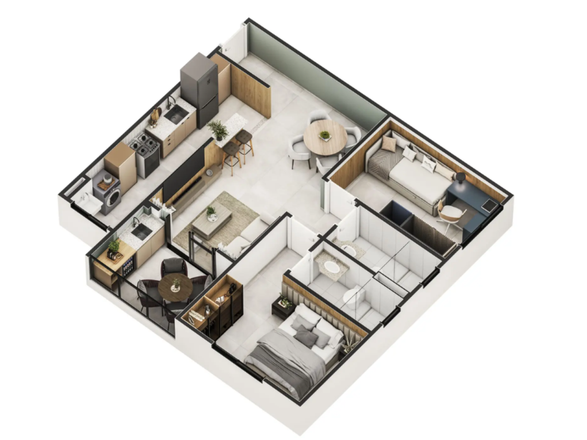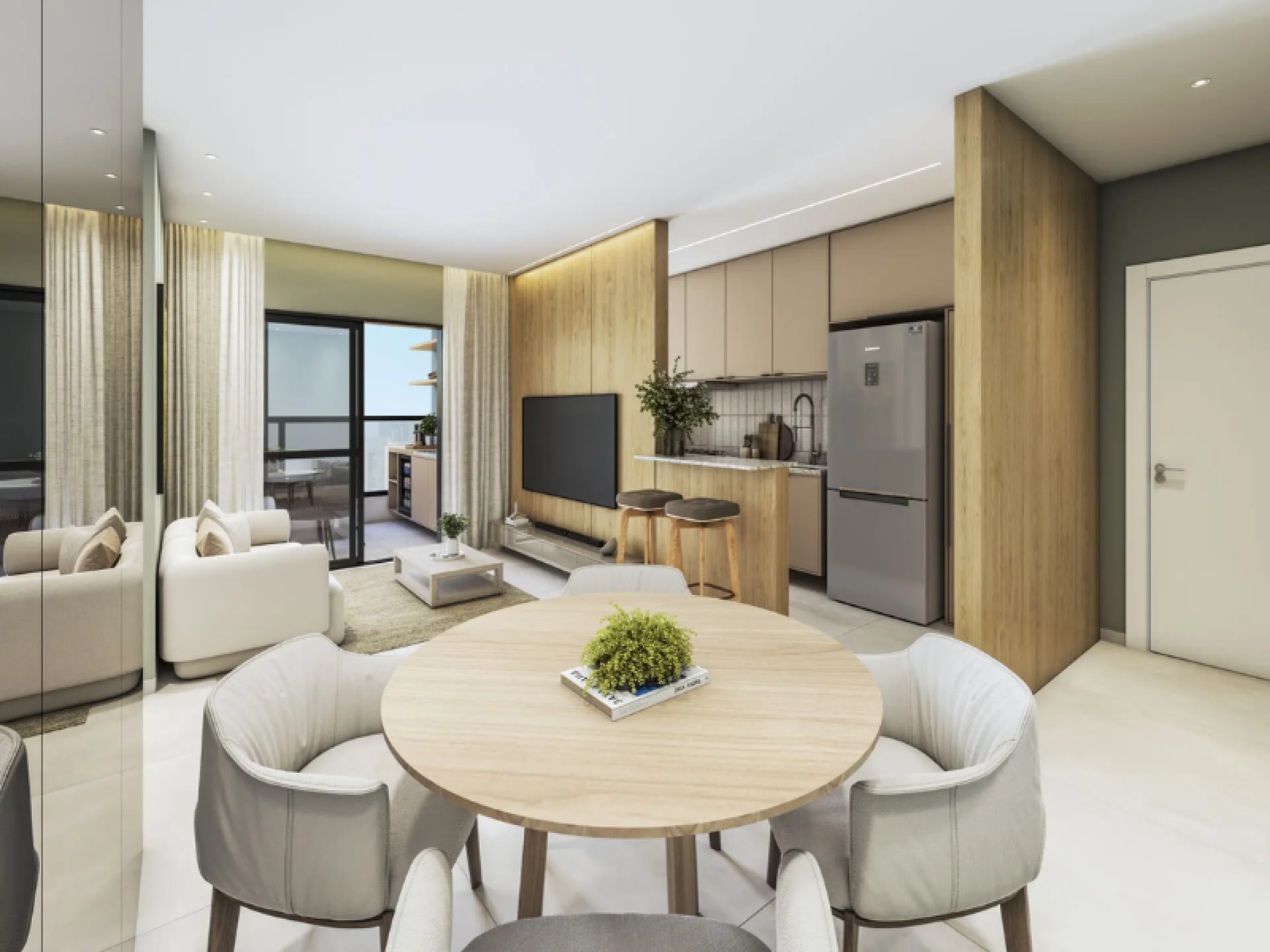 Com apartamentos de 2 quartos, sendo 1 suíte, varanda gourmet com forro amadeirado e opções com giardino, as plantas chegam a até 71,05m² de área privativa. Um projeto pensado para quem busca viver com leveza e praticidade, a poucos minutos da praia. Tudo isso em um condomínio completo, com mais de 18 áreas de lazer equipadas, incluindo piscina com deck molhado, salão de festas, academia com espaço cross, cinema, petplay, coworking e muito mais.