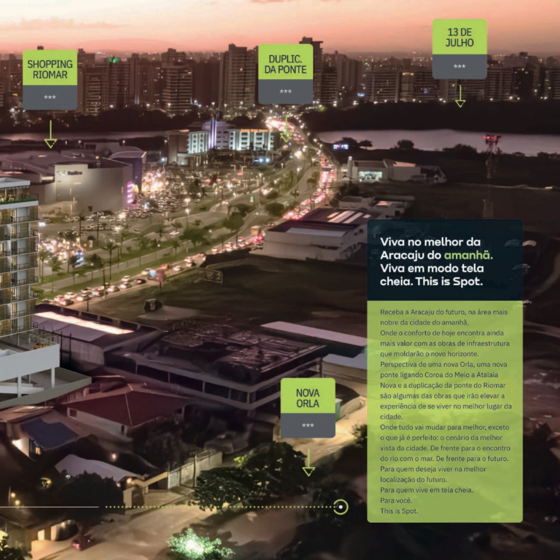 Na principal avenida da Coroa do Meio, uma das áreas que mais cresce em Aracaju, com importantes obras estruturantes em andamento, e em uma localização já consolidada como uma das mais completas da cidade. Em frente ao maior e melhor shopping, a poucos minutos da Orla, de parques, escolas e hospitais, você terá tudo o que precisa para facilitar o seu dia a dia.